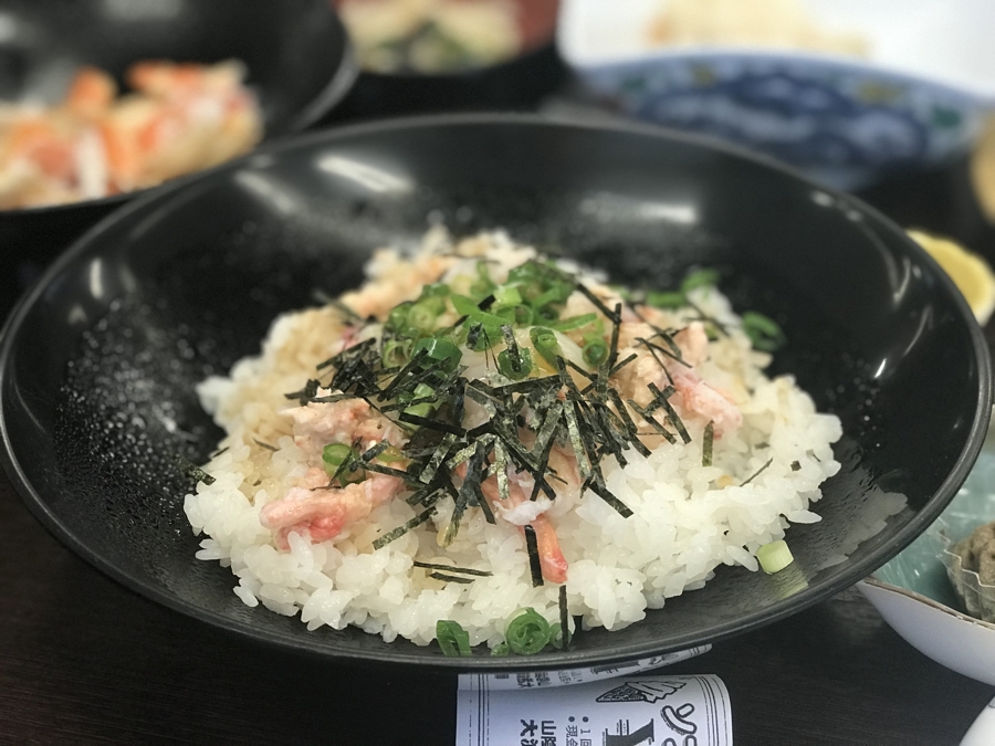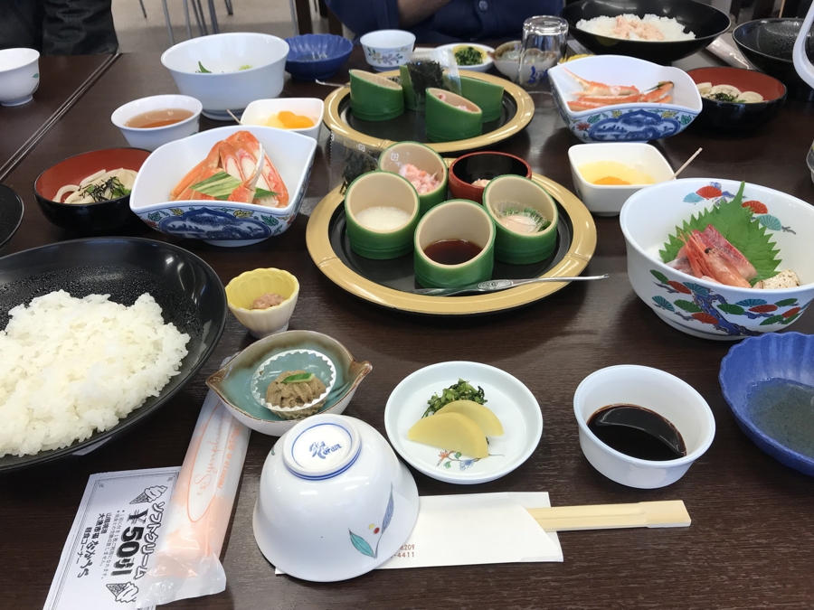 | ここの「かにトロ丼」はテレ朝のスマステーションでも取り上げられたということで有名ですが、山陰地方といえばカニですよね。確かに、カニの身がマグロのトロのような旨味と深い味わいがあって、とっても美味しかったです。バスの中でかなり飲んでたのにビールが進む進む。(笑) |