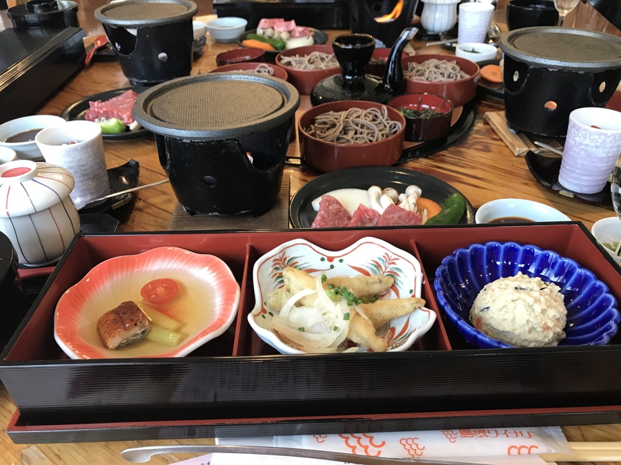 | 出雲大社からバスで10分ほどのところにある島根ワイナリーで昼食です。ワインの試飲で迎え酒をし、島根和牛のサイコロステーキに舌鼓を打ち、〆に出雲ソバを喰らうという胃袋崩壊のメニューでした(笑)。でも、これこそが旅行ってもんですよね。(^^)v |